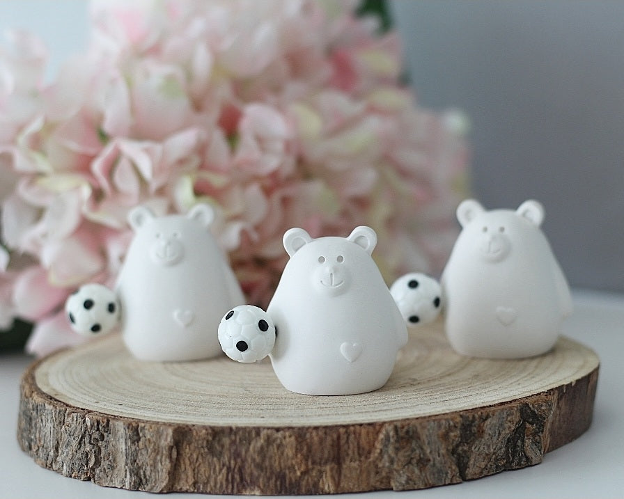 Dieser liebevoll gestaltete kleine Bär mit Fußball in der Pfote ist die perfekte Geschenkidee für Fußballfans oder einfach als charmante Dekofigur. Die Figur wird von Hand gegossen, sorgfältig geschliffen und mit einem dezenten Herzdetail versehen. Der kleine Fußball ist ebenfalls handbemalt und rundet das Design verspielt ab.