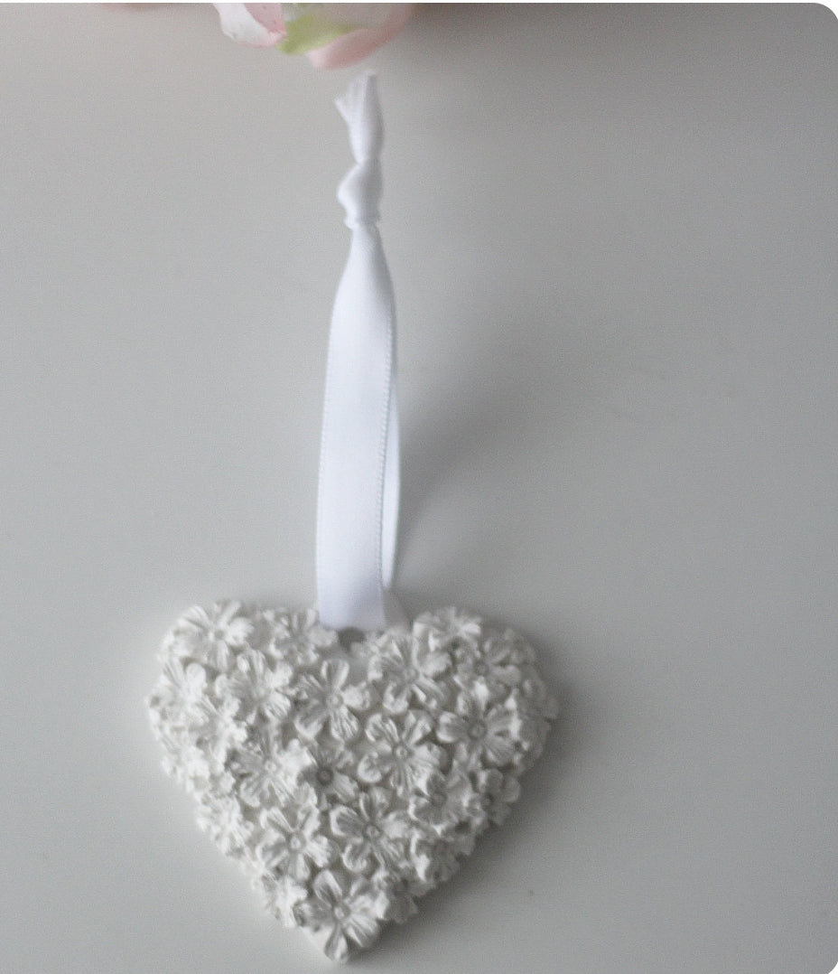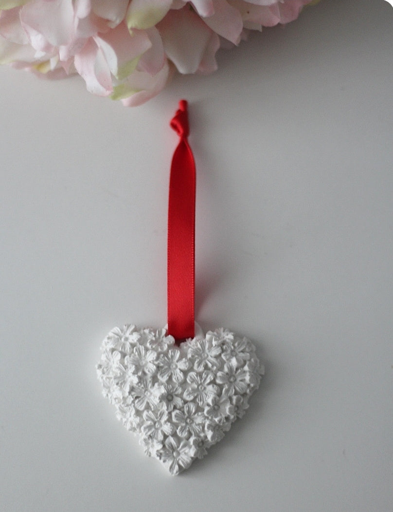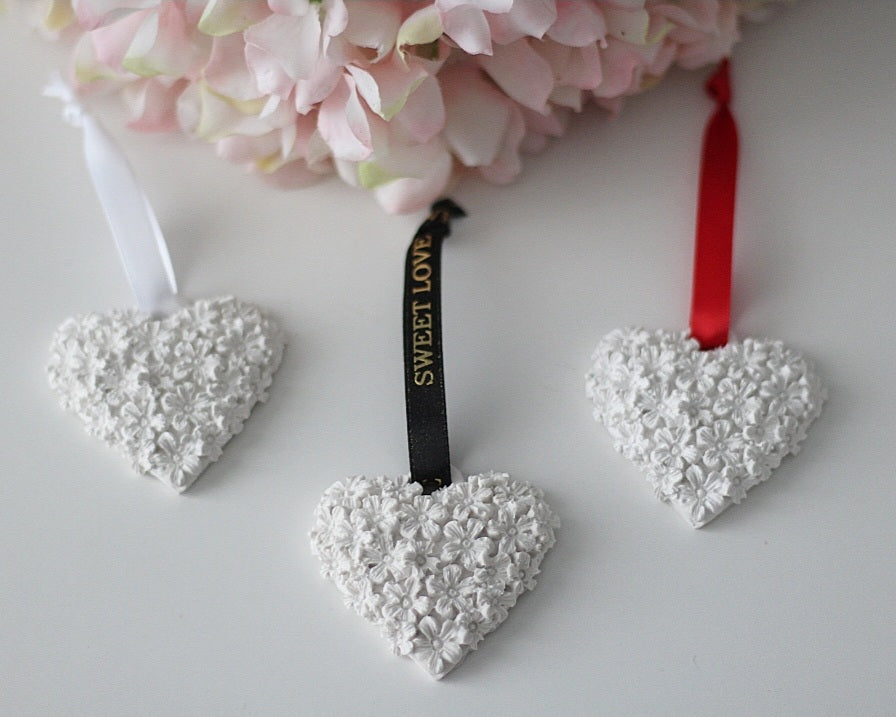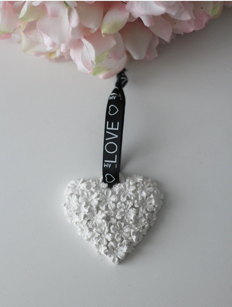 Herzanhänger aus Raysin. Damit lässt sich jedes Geschenk, Blumenstrauß oder Dekostück ganz einfach verschönern.