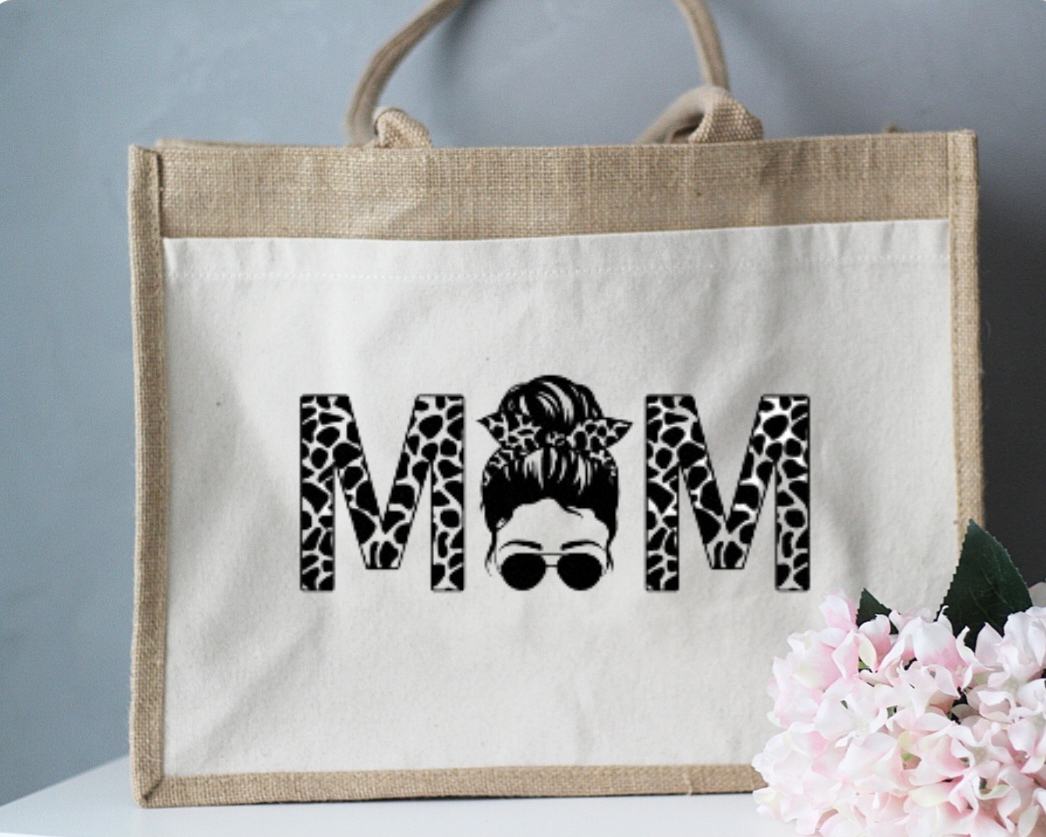 Diese stylische Jutetasche ist ein echtes Statement für alle Mütter mit Persönlichkeit und Humor. Der coole „MOM“-Print im Animal-Print-Look mit Sonnenbrille und Dutt verleiht der Tasche eine moderne, freche Note – perfekt für den Alltag, den Stadtbummel oder als Geschenk zum Muttertag.