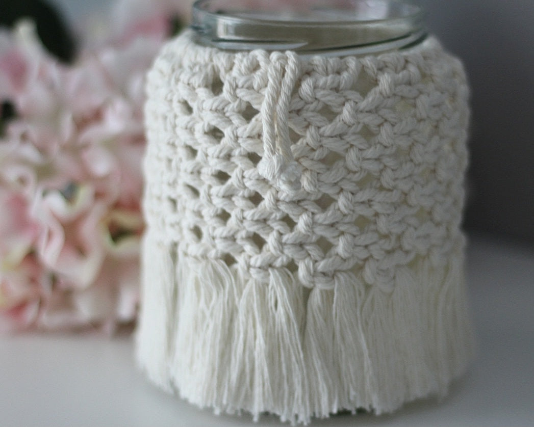 Verleihe deinem Zuhause eine gemütliche und entspannte Atmosphäre mit diesem handgefertigten Makramee-Windlicht. Dieses wunderschöne Windlicht wurde mit viel Liebe zum Detail aus hochwertiger Baumwollschnur in weiß geknüpft und ist perfekt, um eine gemütliche Stimmung in deinem Zuhause zu schaffen.