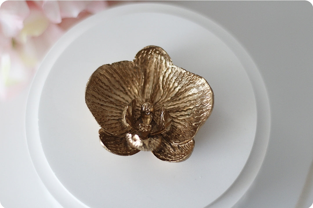 Design: Zeitlos elegantes Weiß mit goldfarbener oder silberfarbener Orchideen-Applikation