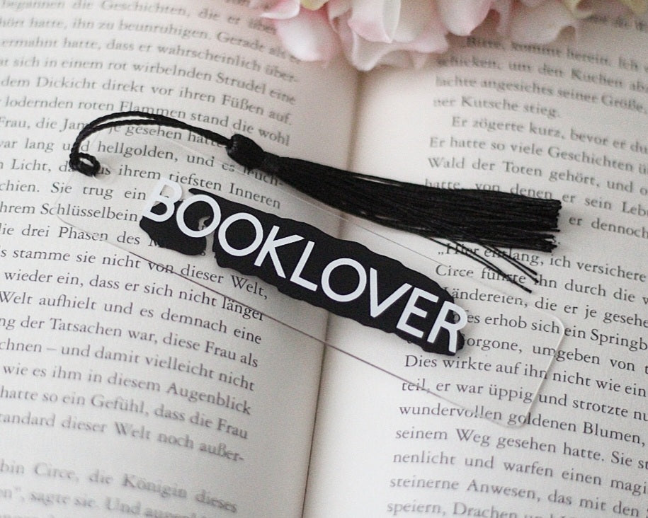 Für alle, die Bücher nicht nur lesen, sondern leben: Dieses moderne Lesezeichen aus transparentem Acryl trägt stolz den Aufdruck „BOOKLOVER“ in klarer Schrift. Die elegante Troddel rundet das Design stilvoll ab und macht das Wiederfinden deiner aktuellen Buchseite besonders einfach.