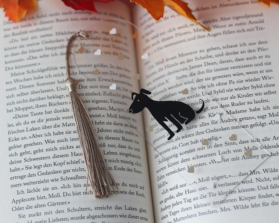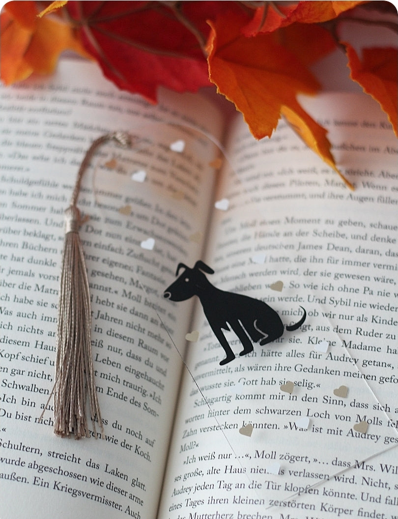 Dieses liebevoll gestaltete Lesezeichen mit Hundemotiv ist der perfekte Begleiter für alle Bücherwürmer, Tierliebhaber und Hundefans.