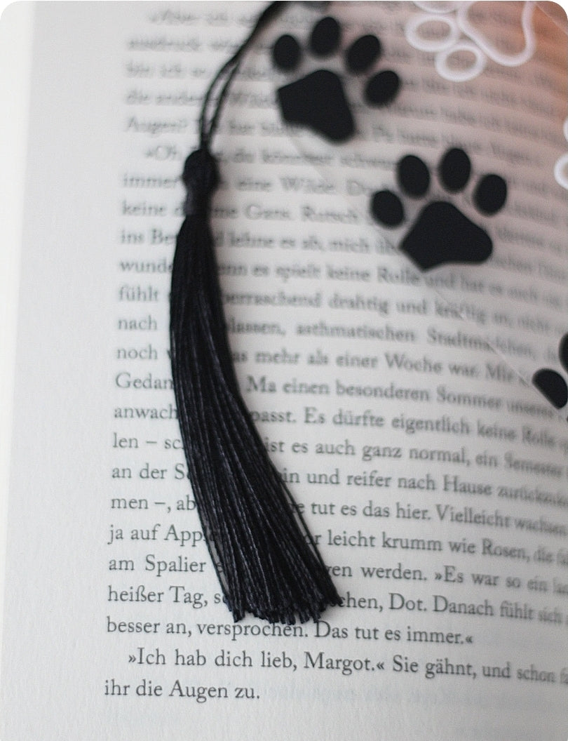 Dieses liebevoll gestaltete Lesezeichen mit Pfotenabdruck-Design ist das perfekte Accessoire für alle Bücherfreunde und Tierliebhaber. Das transparente Lesezeichen ist mit mehreren niedlichen Pfotenabdrücken in Schwarz und Weiß verziert und wird durch eine elegante Quaste abgerundet, die nicht nur dekorativ, sondern auch praktisch ist – so findest du deine letzte Lesestelle im Handumdrehen wieder.