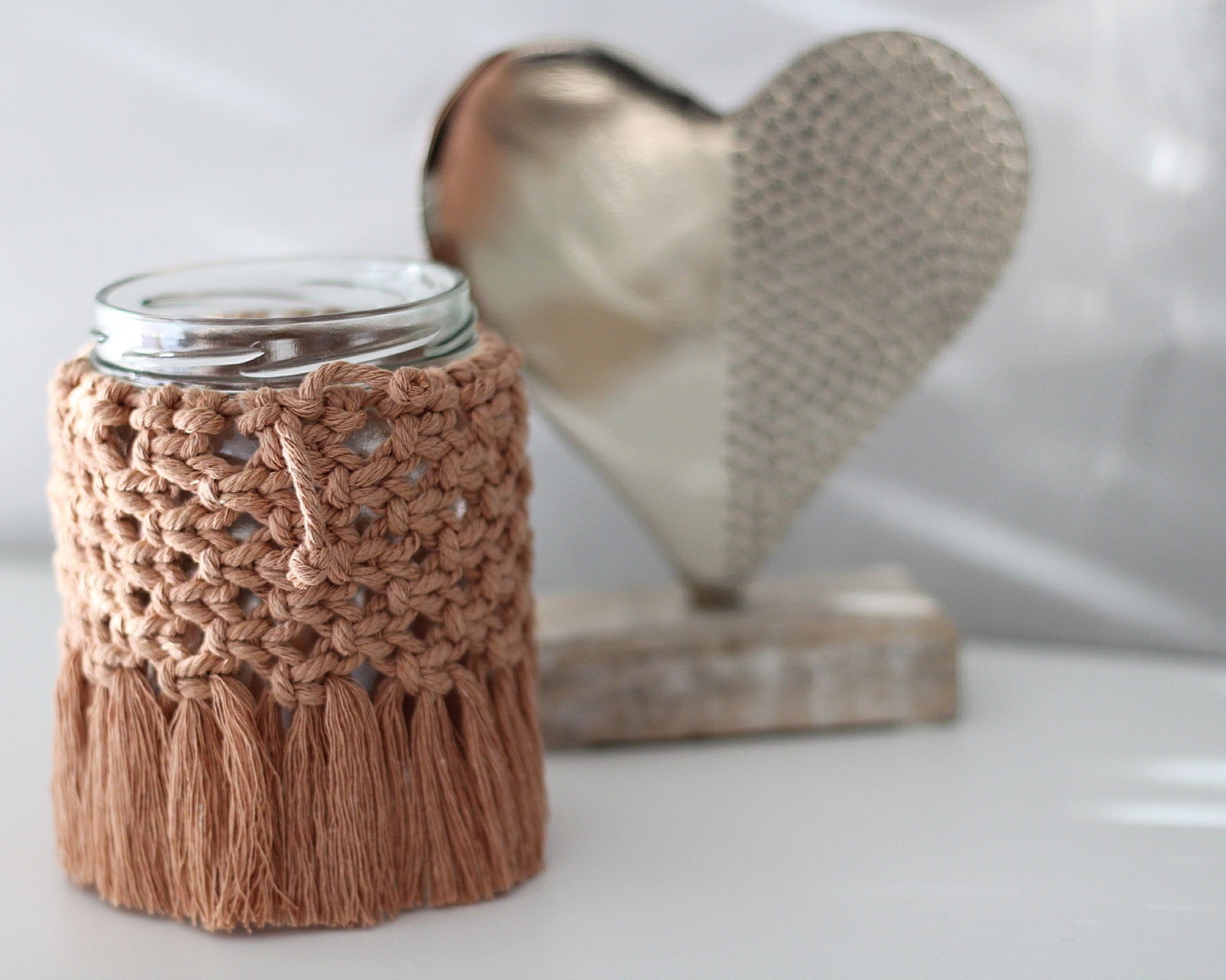 Verleihe deinem Zuhause eine gemütliche und entspannte Atmosphäre mit diesem handgefertigten Makramee-Windlicht. Dieses wunderschöne Windlicht wurde mit viel Liebe zum Detail aus hochwertiger Baumwollschnur in braun geknüpft und ist perfekt, um eine gemütliche Stimmung in deinem Zuhause zu schaffen.