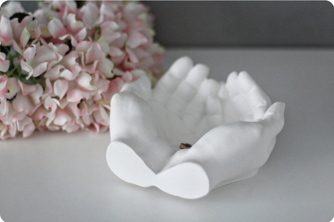 Diese einzigartige Deko-Schale in Form zweier sanft geöffneter Hände symbolisiert Geborgenheit, Achtsamkeit und Wertschätzung. Handgefertigt aus hochwertigem Raysin und in edlem Mattweiß gehalten, ist sie nicht nur ein stilvoller Blickfang, sondern auch eine wunderschöne Ablage für Schmuck, kleine Accessoires oder persönliche Erinnerungsstücke.