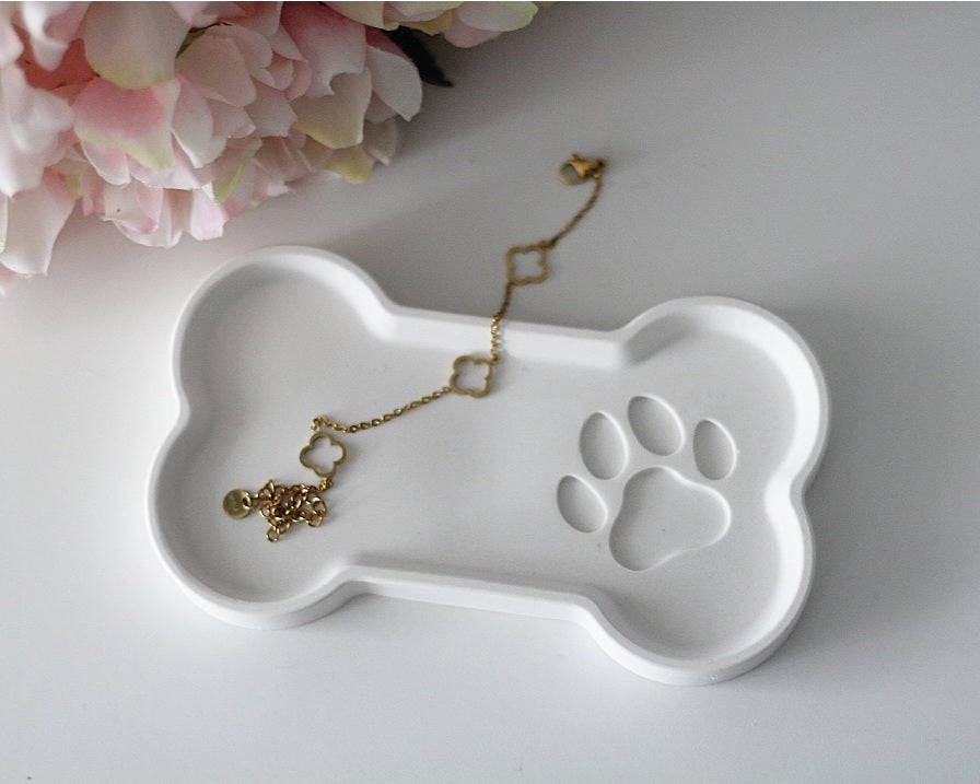 Diese handgegossene Raysin-Schale in Knochenform mit eingearbeitetem Pfotenabdruck ist ein charmantes Wohnaccessoire für Tierliebhaber. Ob als Ablage für Schmuck, Schlüssel oder Kleinigkeiten – die Schale verbindet Funktionalität mit liebevollem Design.