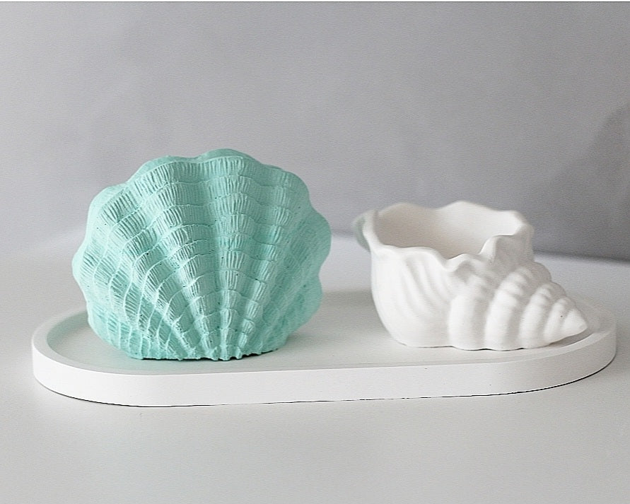 Dieses liebevoll gestaltete Deko-Set bringt eine frische Meeresbrise direkt in dein Zuhause. Bestehend aus zwei stilisierten Muscheln und einer passenden Ablage eignet sich dieses Set ideal als Schmuckablage, Tischdekoration oder Badezimmeraccessoire.