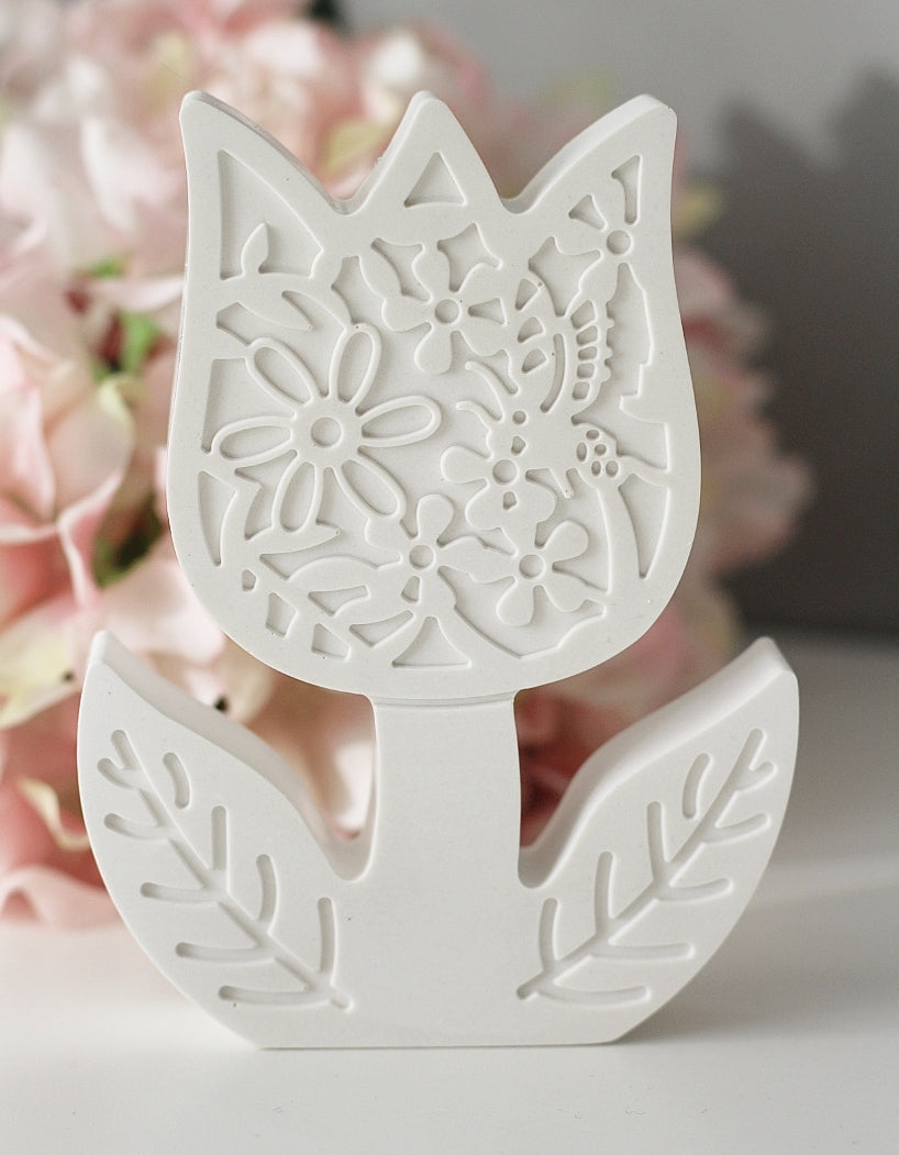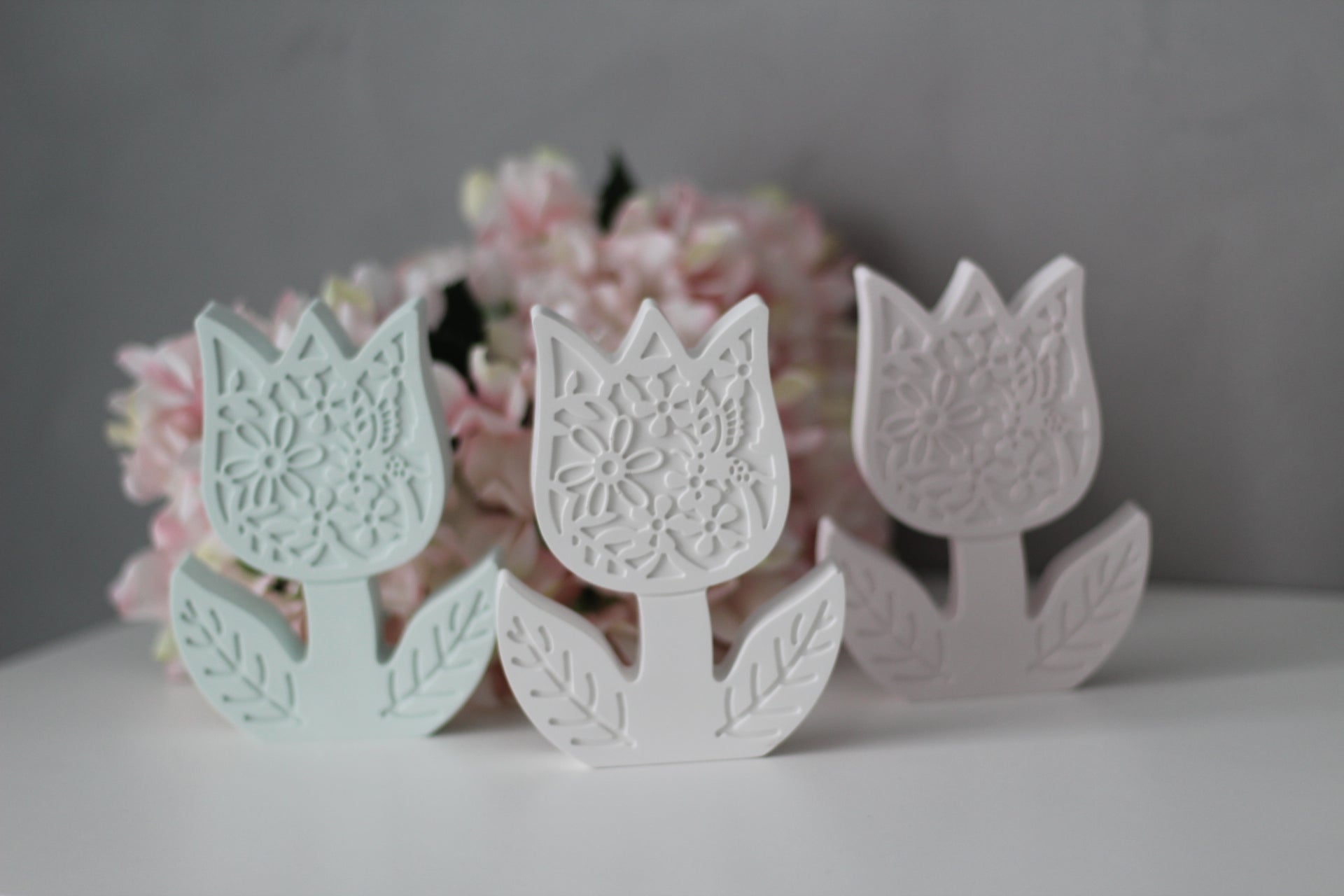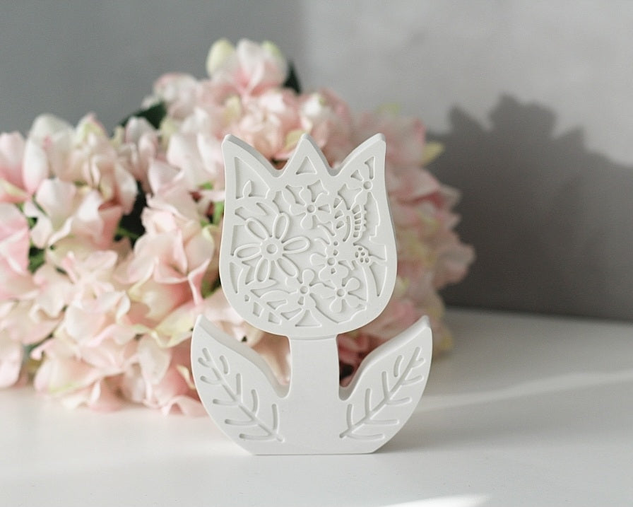 Diese liebevoll gefertigte Tulpe aus hochwertigem Raysin bringt frischen Frühlingszauber in jedes Zuhause. Mit zartem Blütenrelief und detailreichen Ausschnitten ist sie ein stilvoller Blickfang auf dem Tisch, im Regal oder auf einem Deko-Tablett.