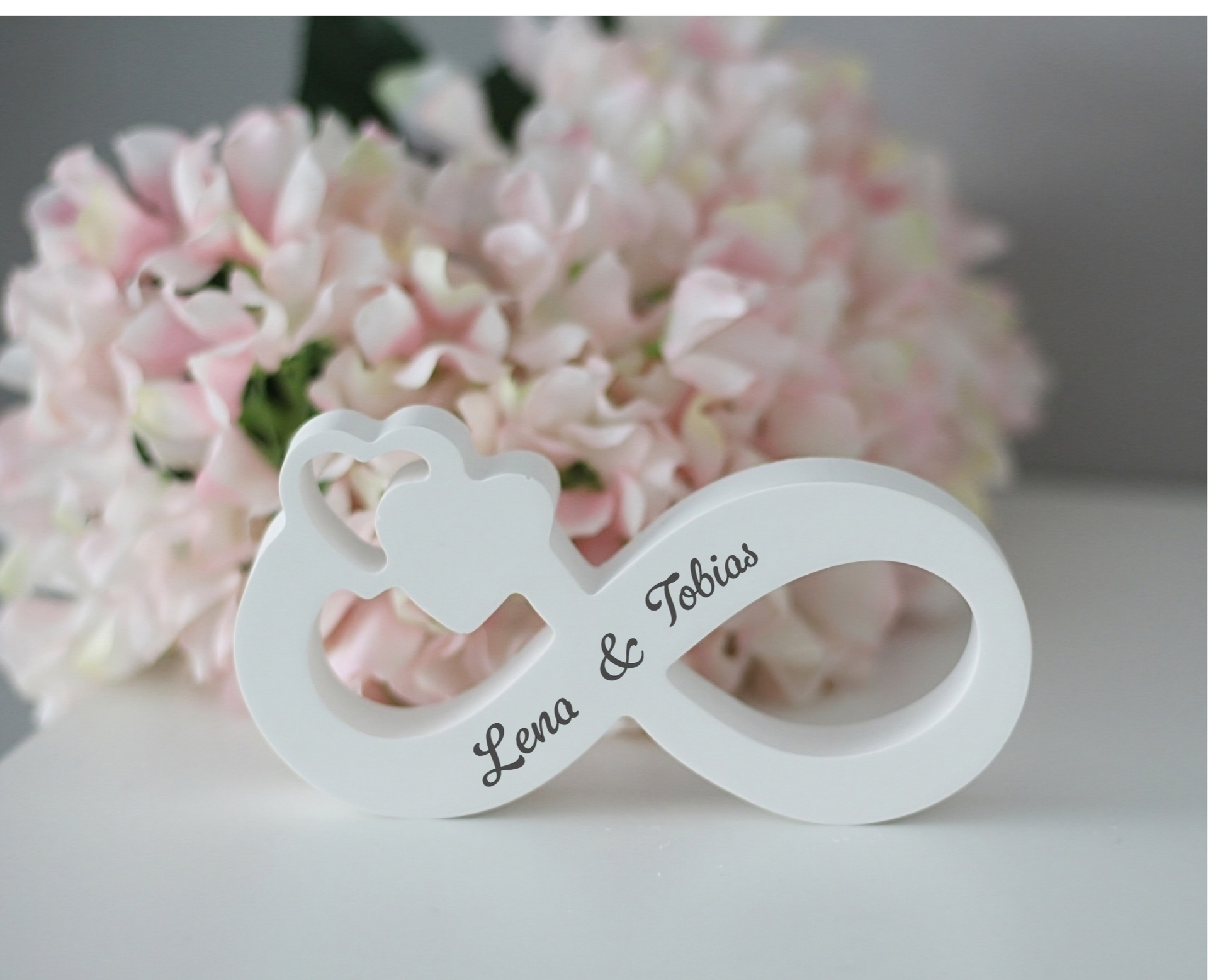 Dieses liebevoll gestaltete Unendlichkeitszeichen mit Herz und personalisierten Namen ist mehr als nur eine Dekoration – es ist ein Zeichen ewiger Verbundenheit. Ideal als Geschenk zur Hochzeit, zum Valentinstag, zur Verlobung oder zum Jahrestag.