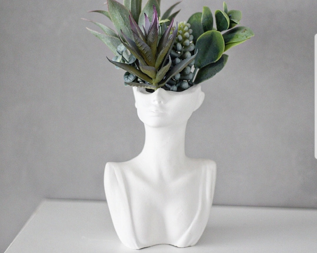 Diese stilvolle Büstenvase vereint moderne Kunst mit natürlicher Eleganz. Das Gesicht einer minimalistischen Figur dient als außergewöhnliches Gefäß für Trockenblumen, Kunstpflanzen oder kleine Arrangements. Die glatte, matte Oberfläche in Weiß unterstreicht die hochwertige Verarbeitung und macht die Vase zu einem echten Blickfang in jedem Raum.