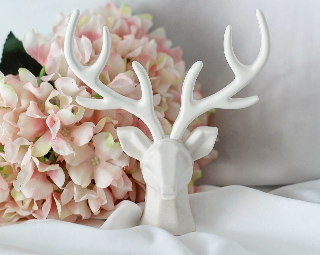 Diese stilvolle Dekofigur in Form eines Hirschkopfes mit ausladendem Geweih ist ein elegantes Highlight für dein Zuhause. Gefertigt aus hochwertigem Raysin überzeugt der Hirsch durch seine matte, samtige Oberfläche und seine moderne, minimalistische Form.