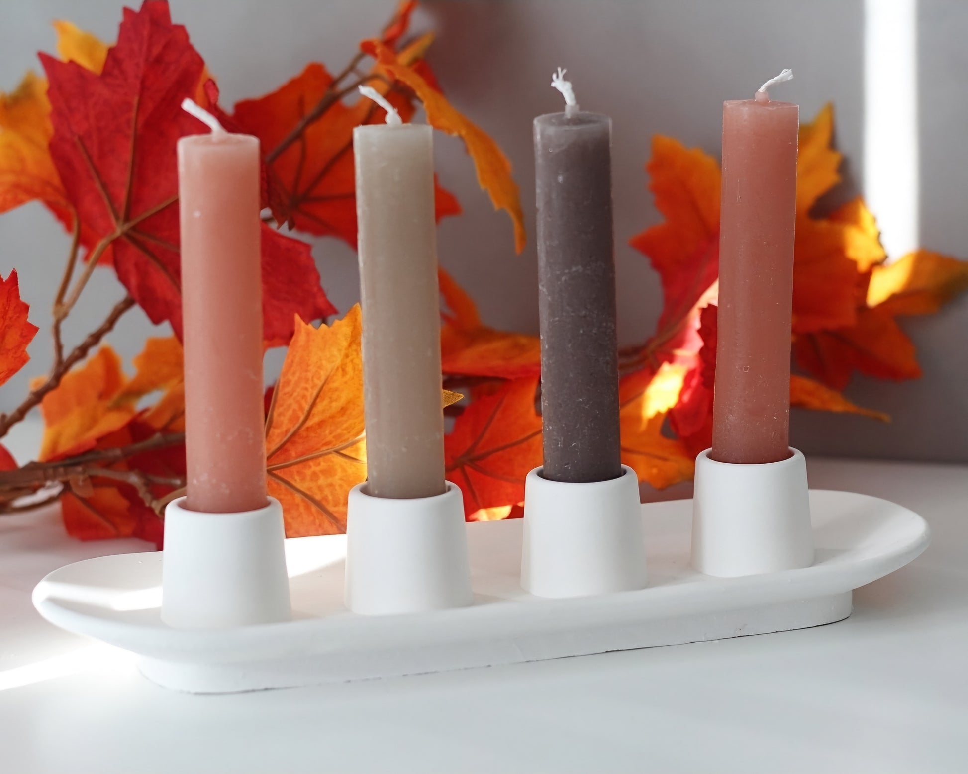 Handgefertigtes Kerzentablett für 4 Stabkerzen.
