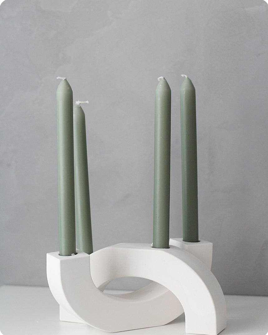 Dieser handgefertigte Kerzenhalter aus Raysin kombiniert modernes Design mit klarer Formensprache. Die geschwungene Bogenform verleiht dem Stück eine skulpturale Eleganz und macht es zu einem stilvollen Highlight in jeder Einrichtung. Die vier Kerzensteckplätze bieten Platz für klassische Stabkerzen und machen den Halter ideal für besondere Anlässe wie Advent, Tischdekorationen oder minimalistische Wohnräume.