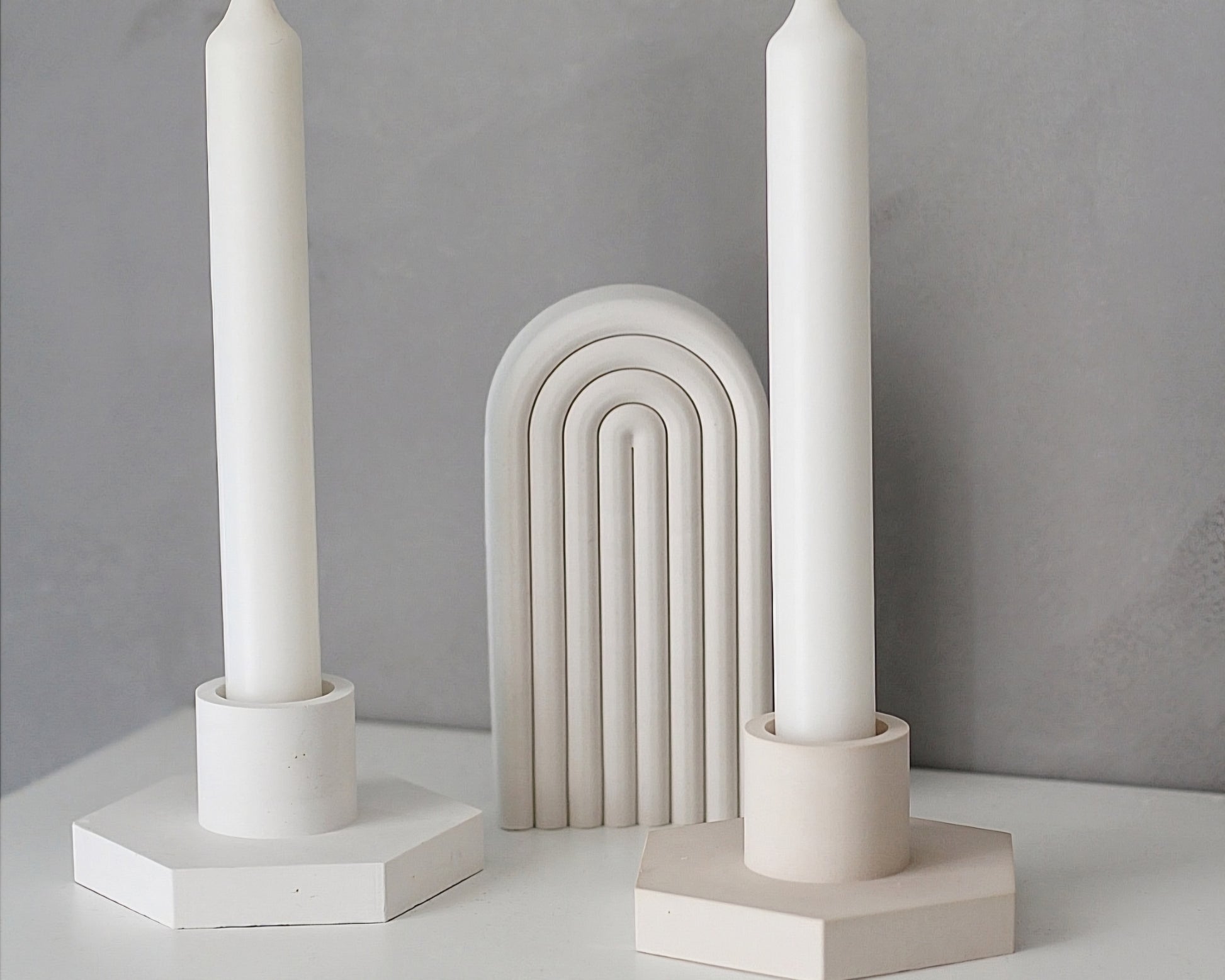 Design: Sechseckige Basis mit zylindrischer Kerzenaufnahme