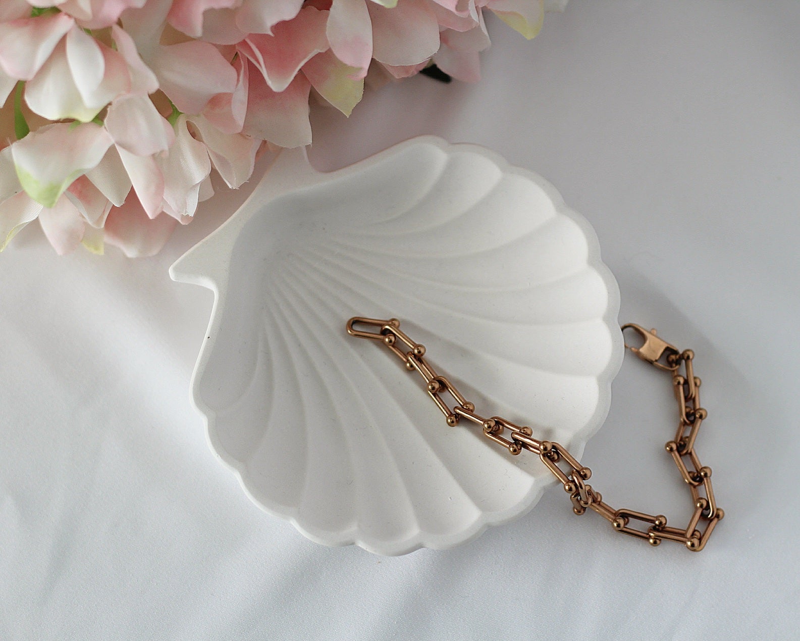 Diese handgefertigte Schale in Muschelform ist ein elegantes und zugleich praktisches Accessoire für dein Zuhause. Gefertigt aus hochwertigem Raysin in mattem Weiß, eignet sie sich ideal als Schmuckablage, Dekoelement oder stilvolle Unterlage für kleine Alltagsgegenstände. Die dezente maritime Optik macht sie zu einem zeitlosen Highlight für jeden Raum.