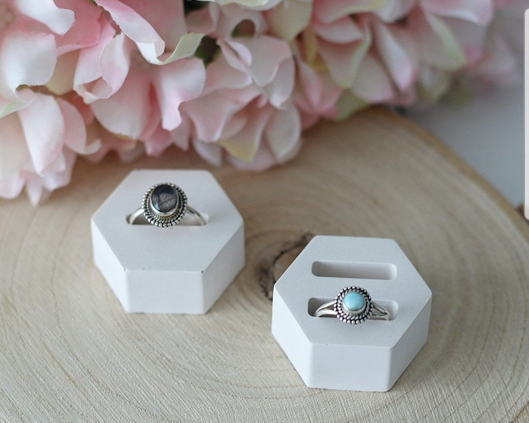 Diese handgefertigten Ringhalter aus Raysin vereinen Funktionalität mit stilvollem Design. In zarten Pastellfarben und schlichter Form sind sie die perfekte Lösung zur ansprechenden Präsentation und Aufbewahrung von Ringen. Ob für den Schminktisch, den Nachttisch oder als Deko im Schmuckladen – diese Displays setzen Schmuckstücke dezent in Szene.