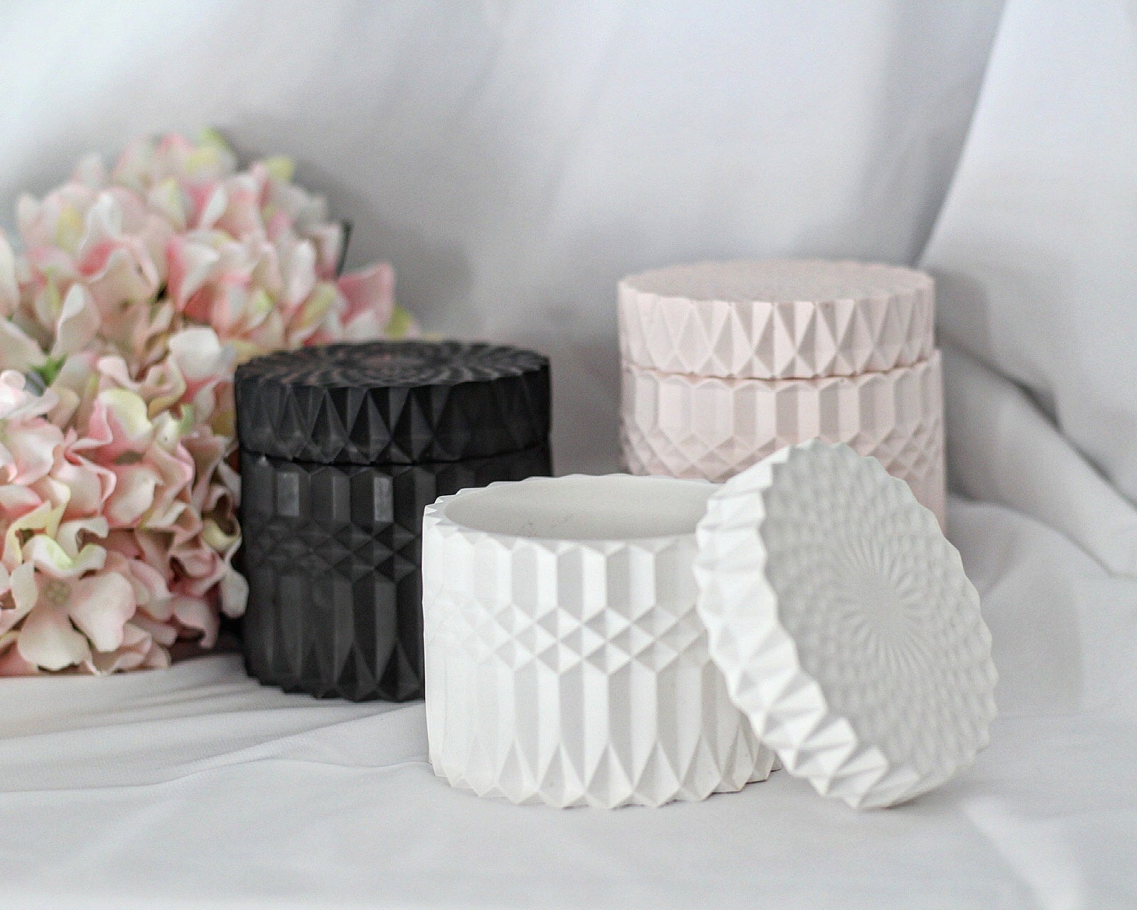 Design: Geometrisches Muster mit strukturierter Oberfläche und passendem Deckel