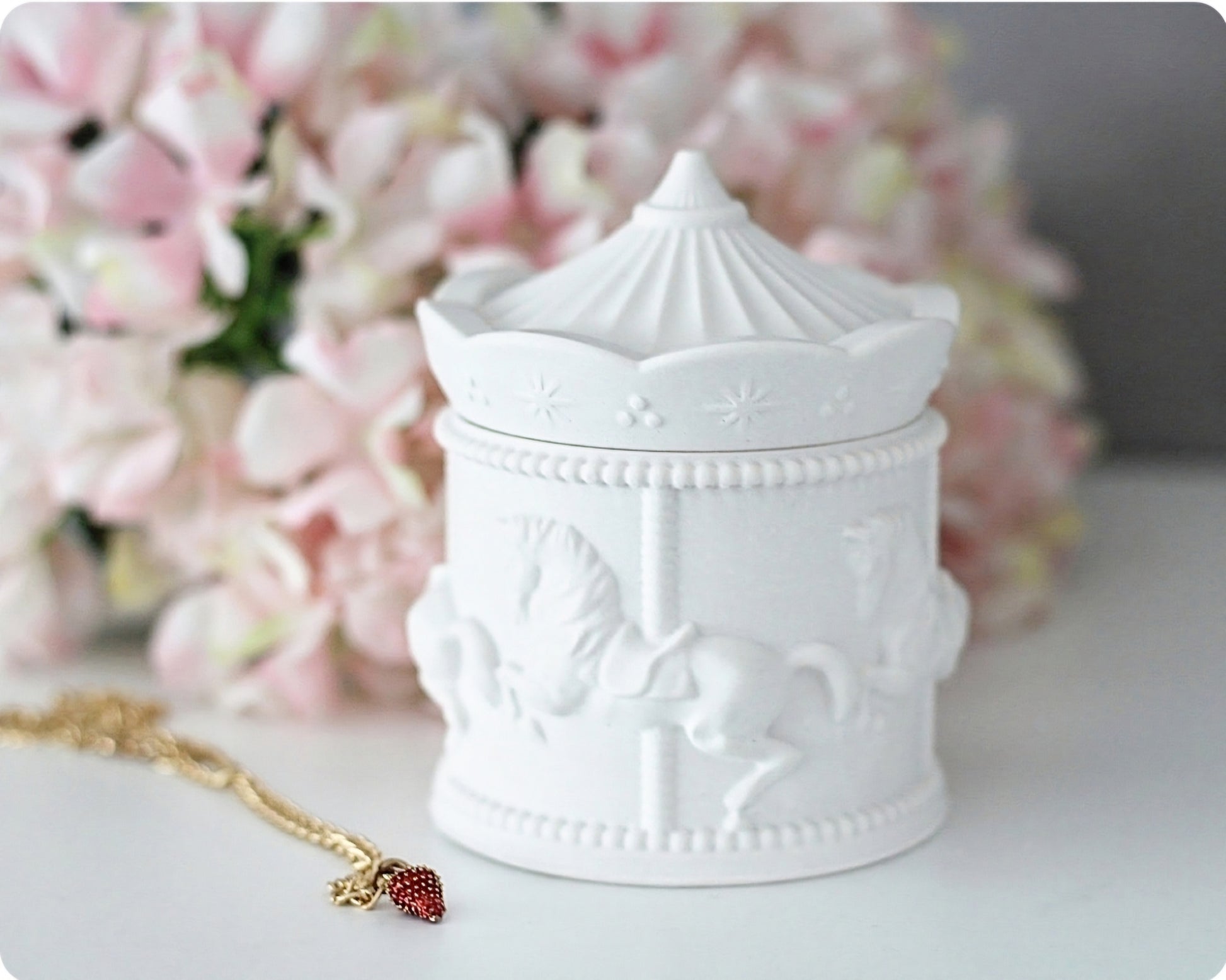 Tauche ein in eine Welt voller Nostalgie mit dieser zauberhaften Karussell-Schmuckdose aus hochwertigem Raysin. Das detailverliebte Design mit Pferdemotiven und dem zarten Runddach erinnert an klassische Jahrmarkt-Attraktionen – ein echter Hingucker auf jedem Schminktisch oder Regal!