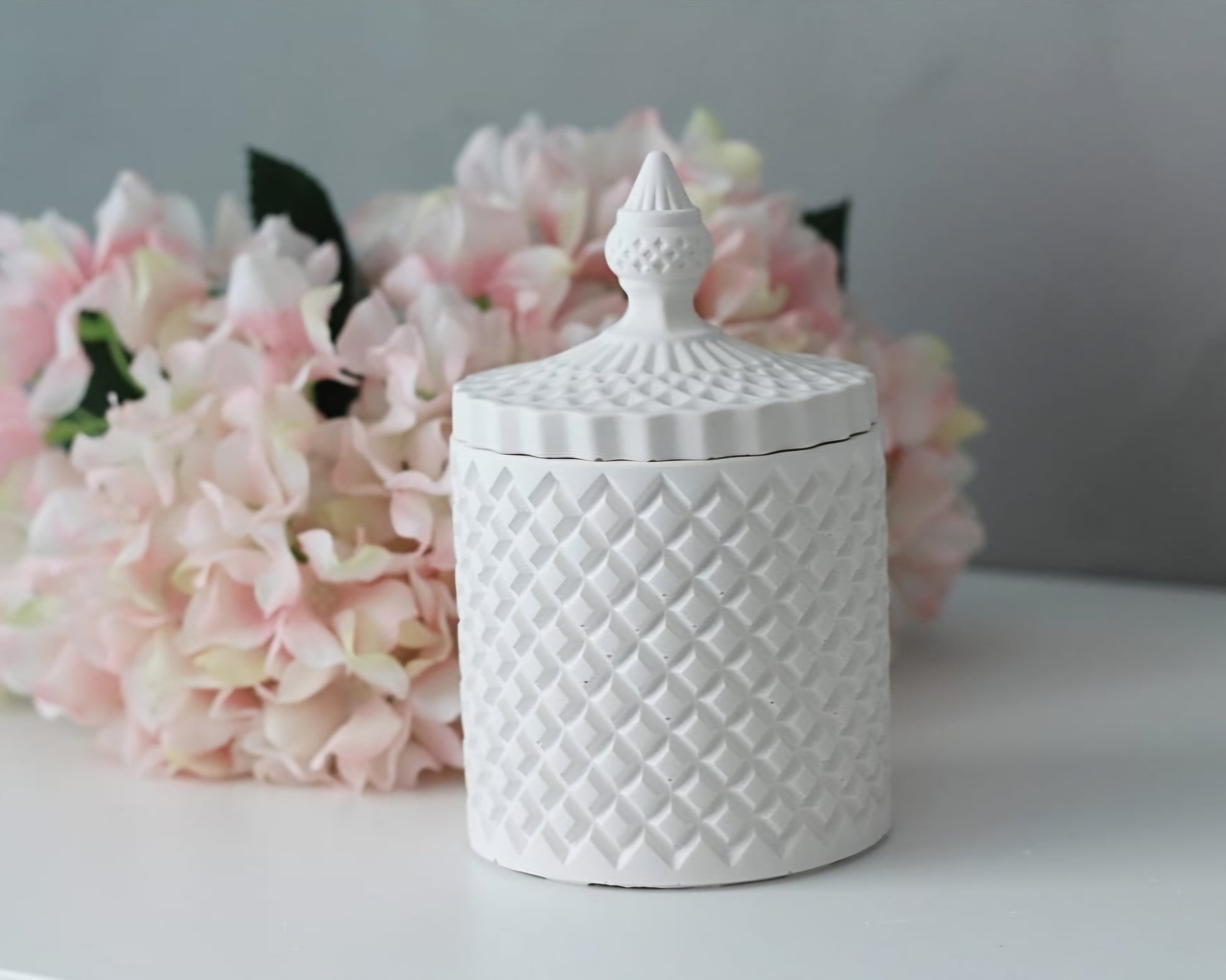 Diese stilvolle Aufbewahrungsdose aus matter Keramik vereint elegantes Design mit praktischer Funktionalität. Die strukturierte Oberfläche im Diamantmuster verleiht ihr einen edlen Look, während der formschöne Deckel mit Griff die Dose perfekt abrundet.