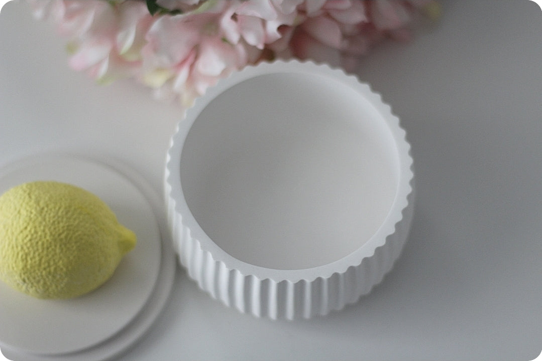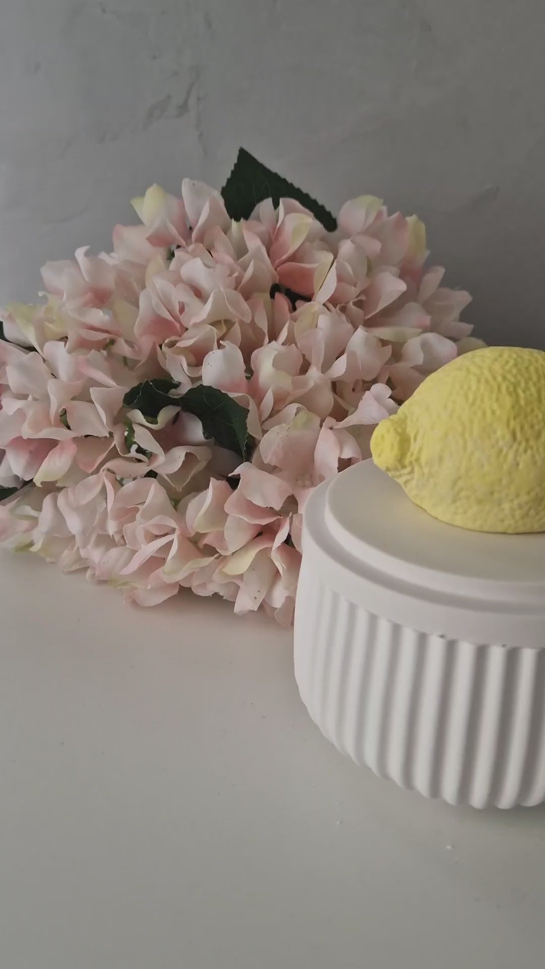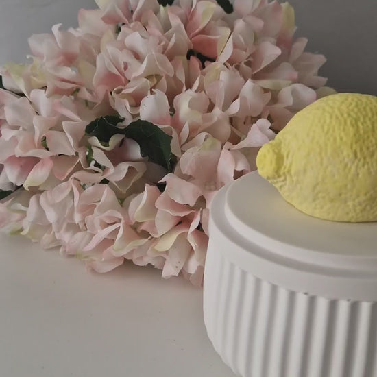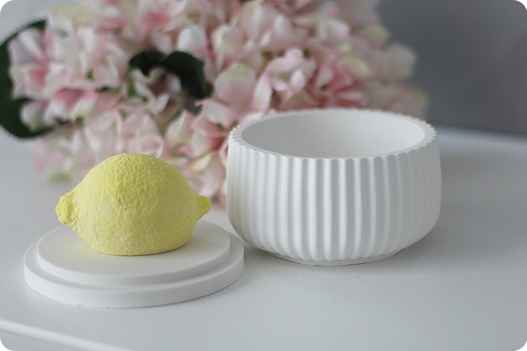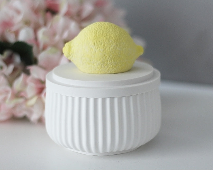 Diese stilvolle Dekodose aus hochwertigem Raysin ist ein charmantes Highlight für jedes Zuhause. Der schlichte, gerillte Behälter in mattem Weiß wird durch einen auffälligen Deckel mit Zitronenfigur zum absoluten Blickfang. Die strukturierte Zitrone verleiht der Dose eine frische, verspielte Note – perfekt für alle, die das Besondere lieben.
