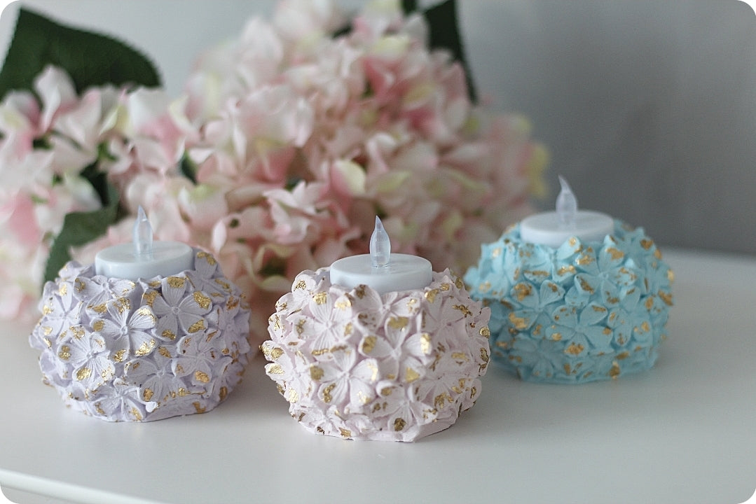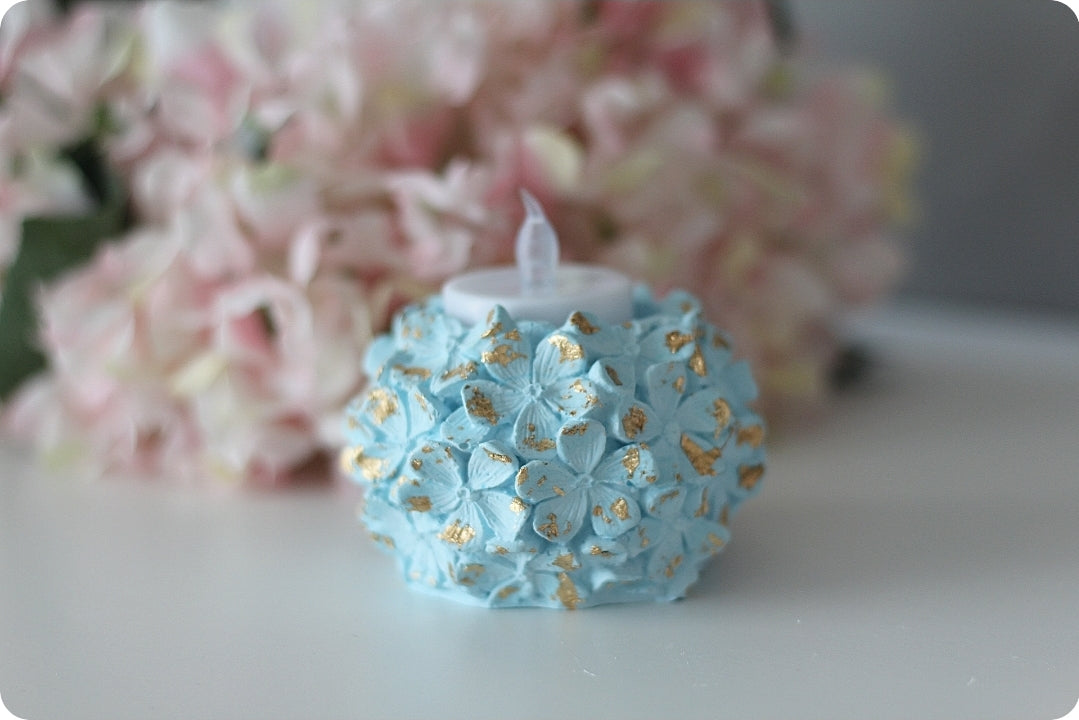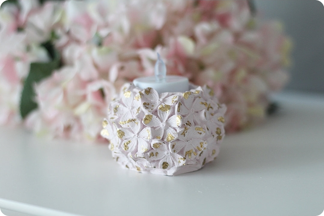 Raysin Teelichthalter Hortensienkugel mit Blattgoldverzierung