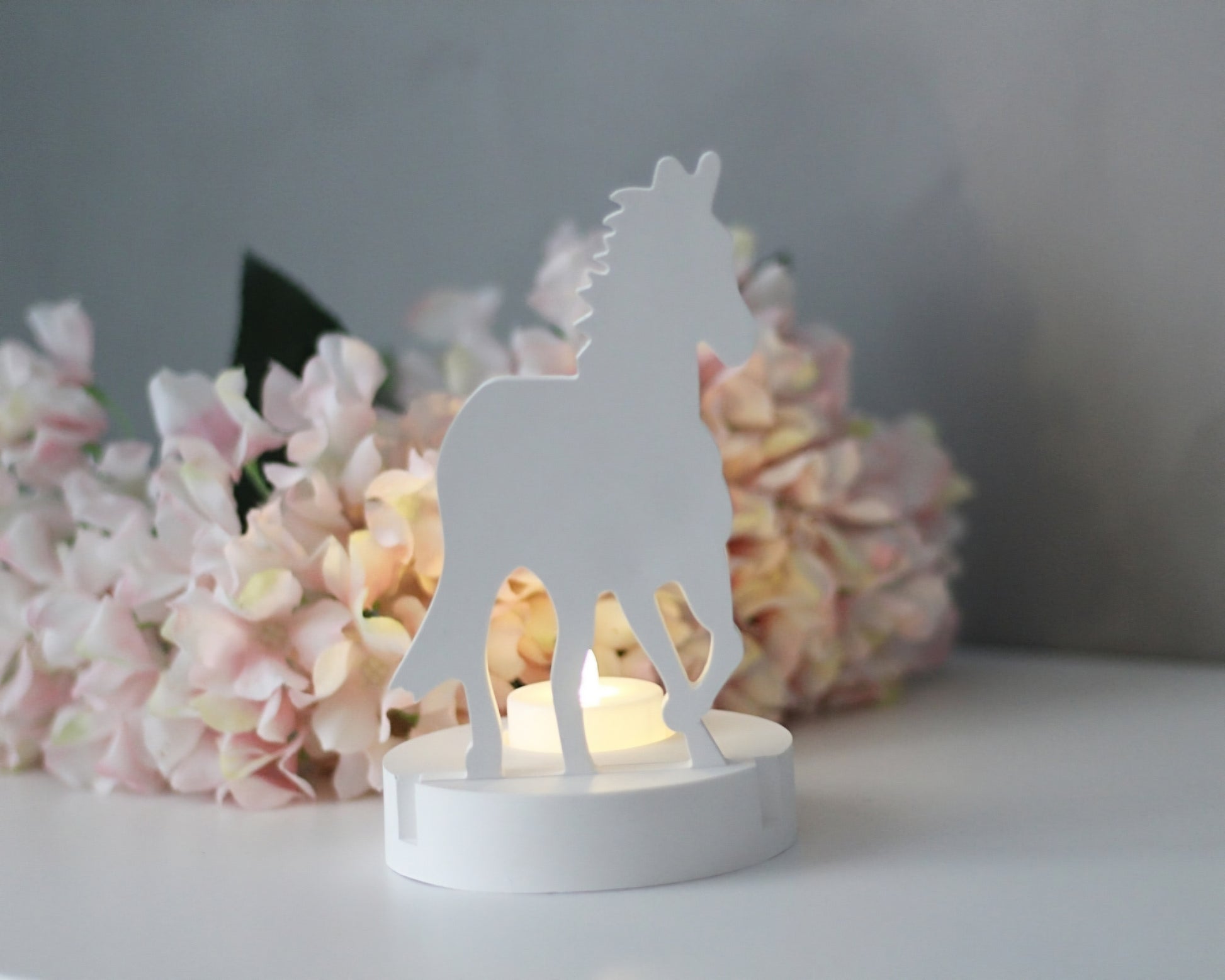 Dieser handgefertigte Teelichthalter in Form eines stilisierten Pferdes bringt Ruhe, Naturverbundenheit und Wärme in jedes Zuhause. Aus hochwertigem Raysin gegossen, überzeugt das Design durch schlichte Eleganz und liebevolle Details. Das Licht eines LED-Teelichts scheint sanft durch die Silhouette und sorgt für eine besonders stimmungsvolle Atmosphäre.